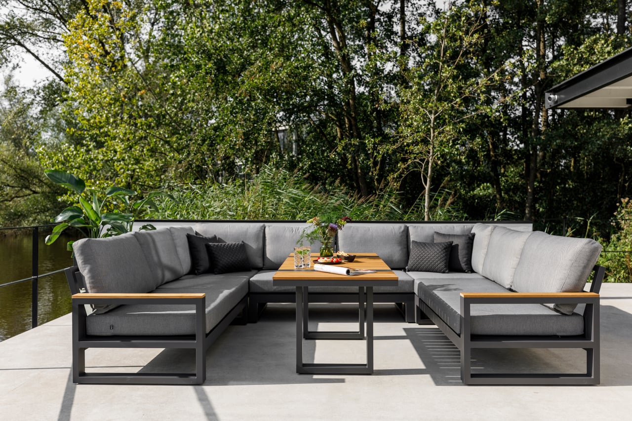 Zestaw wypoczynkowy Soho Lava Mist Grey to nowoczesna propozycja dla osób ceniących komfort, minimalistyczny design i wysoką jakość materiałów. Imponujący układ w kształcie litery U tworzy spójną, otwartą przestrzeń do relaksu i spotkań w większym gronie, idealną na taras, do ogrodu lub strefy lounge.