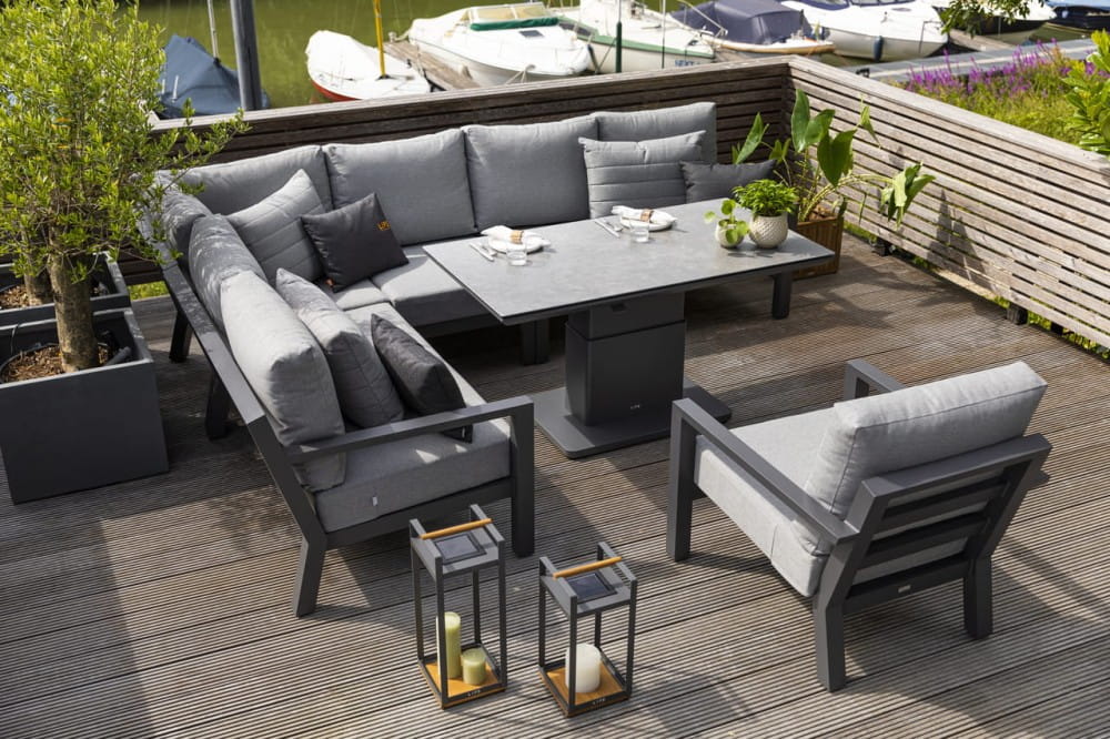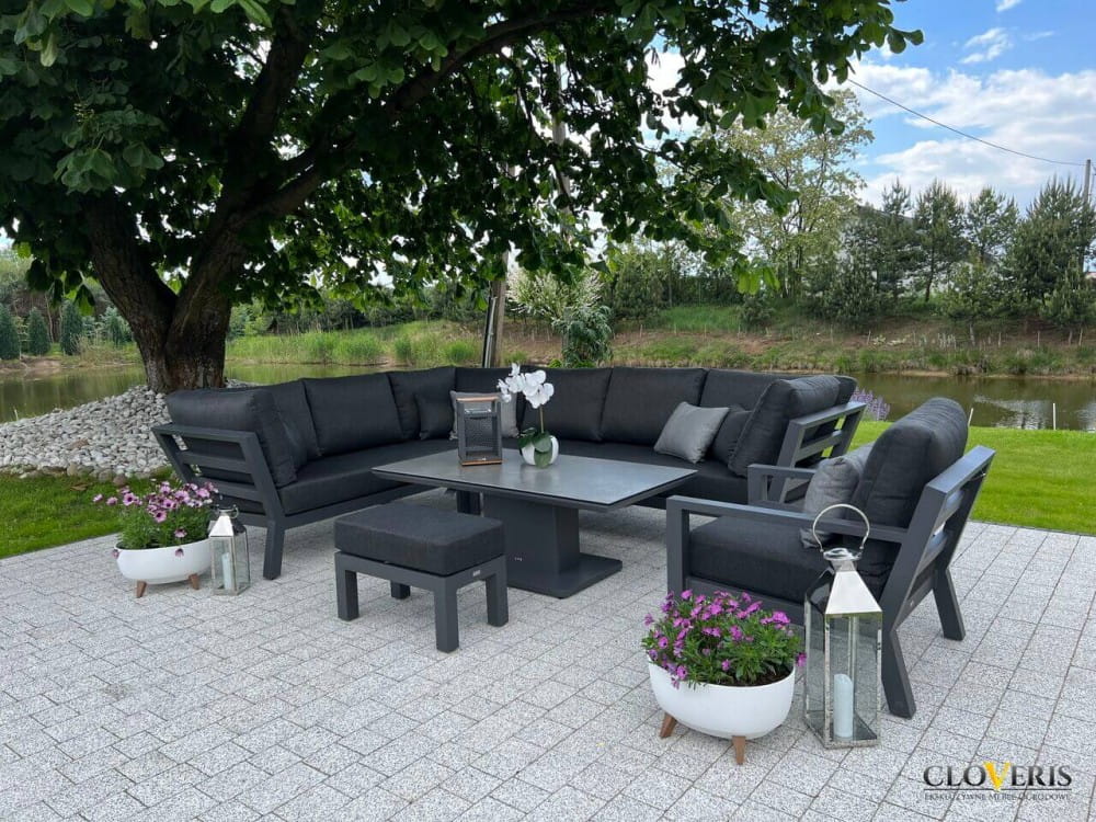 - aluminium lava (grafitowe) / poduszki mist grey soltex (szare)
