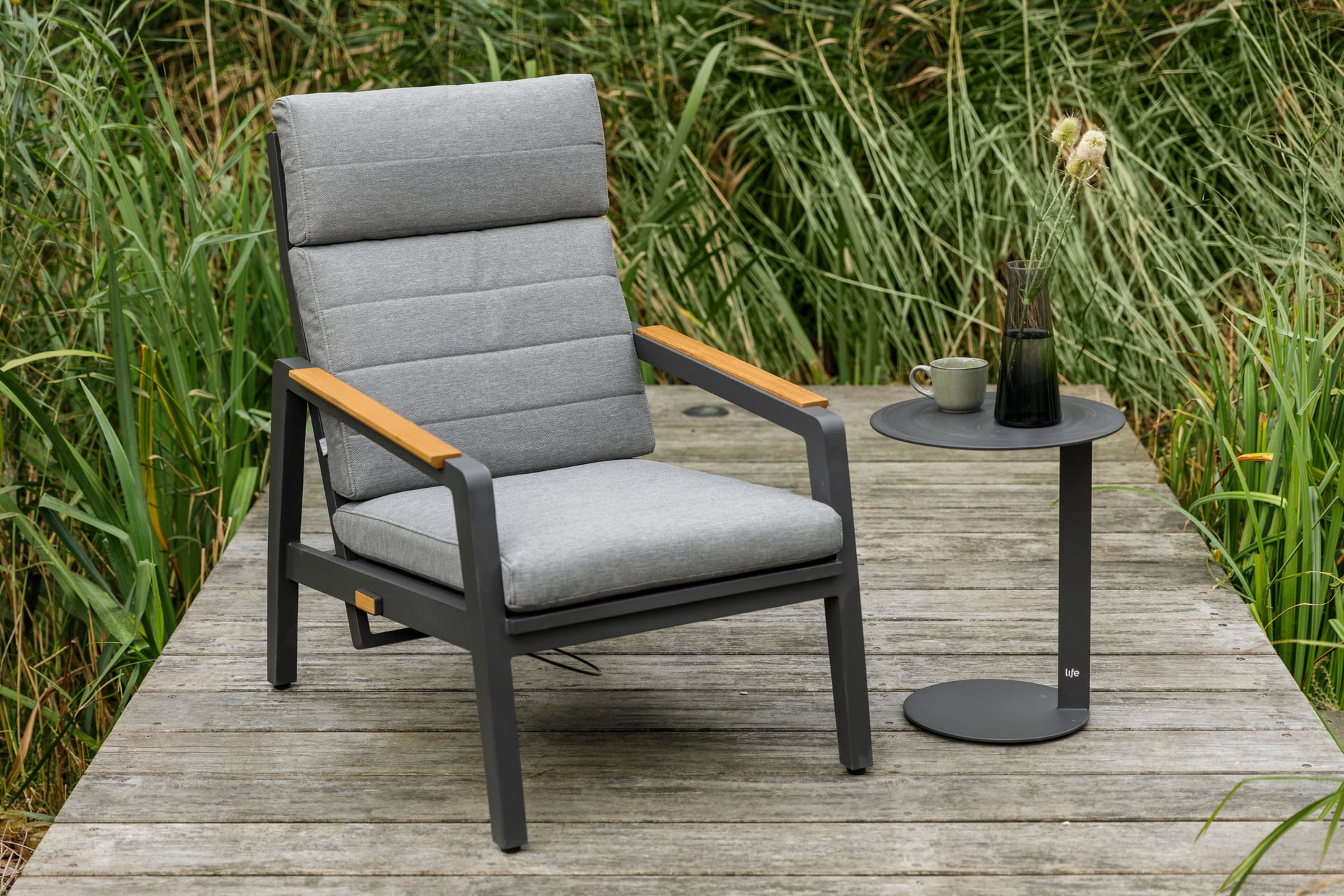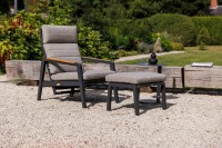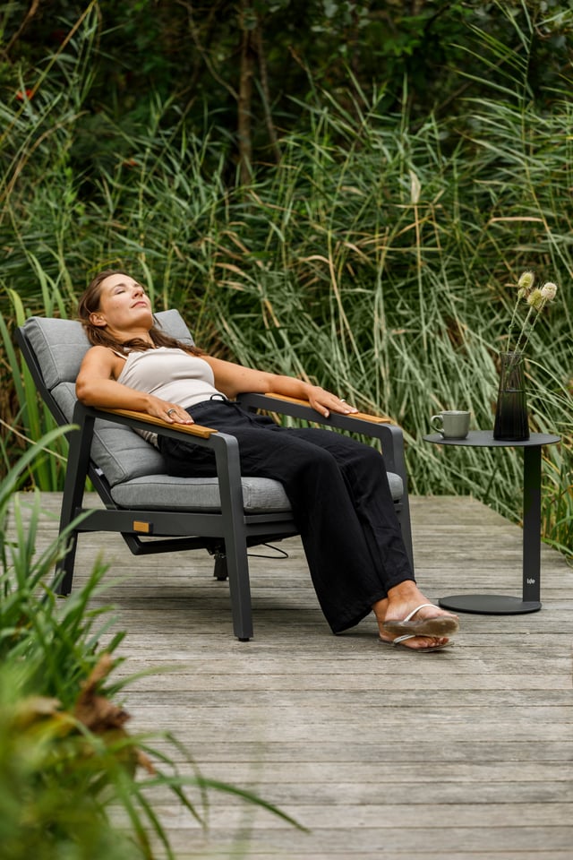Fotel rozkładany Cortez Lava to nowoczesna i elegancka propozycja do aranżacji tarasu, ogrodu lub strefy wypoczynkowej na balkonie. Jego konstrukcja wykonana jest z aluminium w kolorze grafitowym, co zapewnia lekkość, trwałość oraz odporność na warunki atmosferyczne.