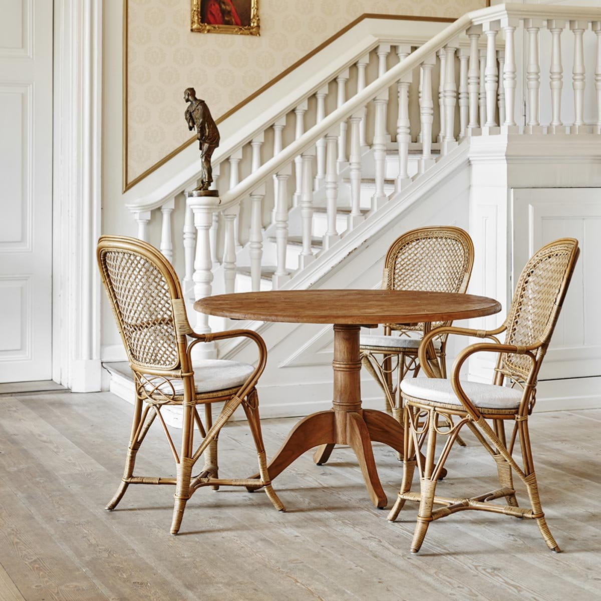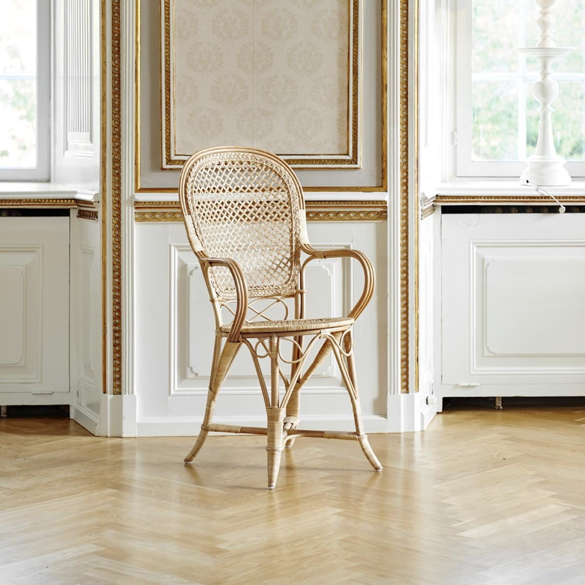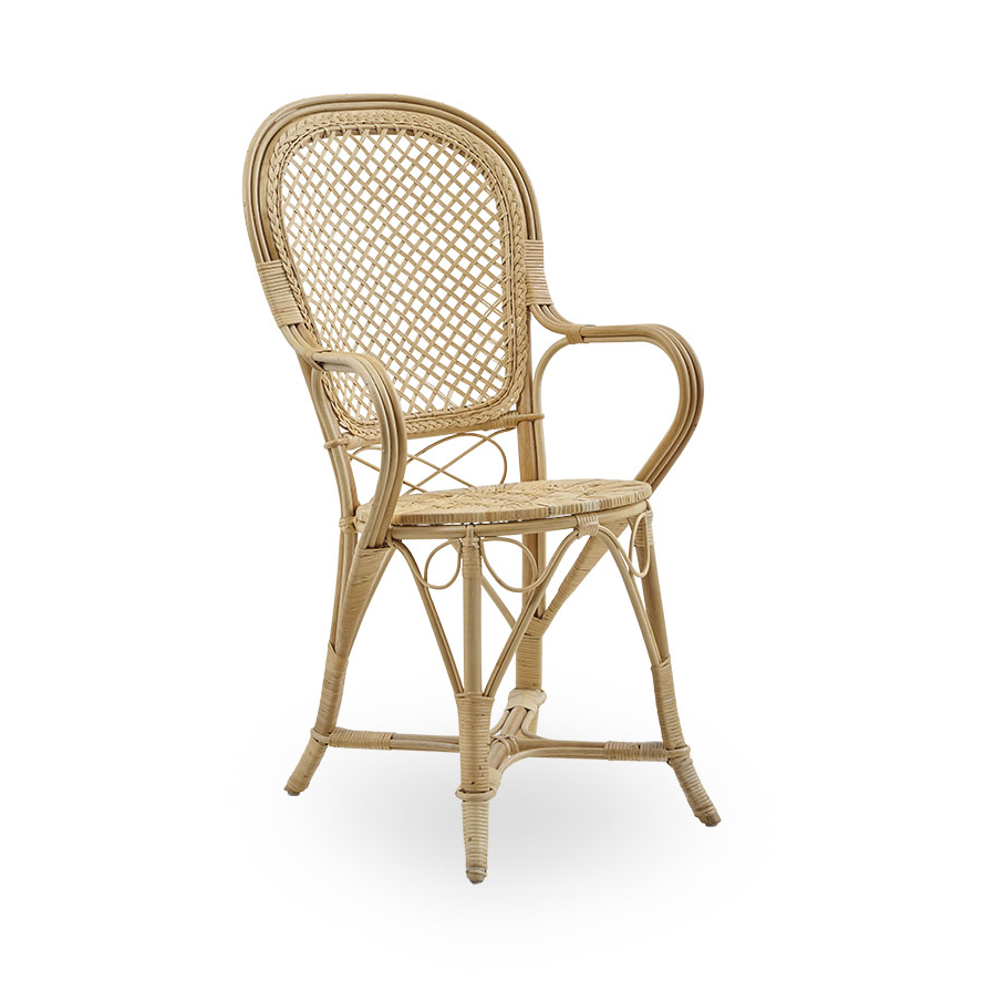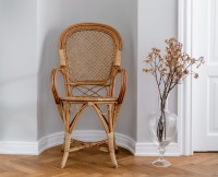 Meble rattanowe, takie jak krzesło Fleur wyróżnia niebywała lekkość i ponadczasowy urok, charakterystyczny dla mebli o klasycznym charakterze. Krzesło jest w całości wykonane z rattanu, a na jego siedzisku ułożona jest miękka poduszka, gwarantująca wygodę przez wiele godzin. Dodatkowo mebel zdobi drobna krateczka na oparciu.