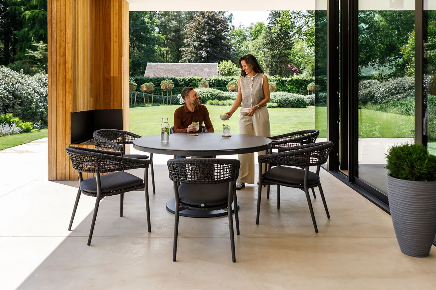 Krzesło ogrodowe Axo to eleganckie i funkcjonalne krzesło obiadowe, zaprojektowane z myślą o wygodnym spędzaniu czasu przy stole na świeżym powietrzu. Łączy w sobie nowoczesny wygląd z wysokim komfortem użytkowania, dzięki czemu świetnie sprawdzi się zarówno podczas codziennych posiłków, jak i spotkań w ogrodzie czy na tarasie.