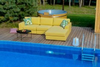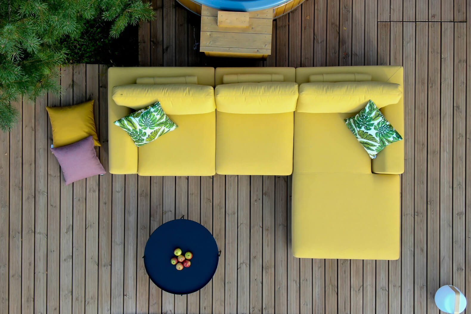 Narożnik ogrodowy tapicerowany z wodoodpornego materiału sunbrella został stworzony, aby zapewnić komfort i stylową przestrzeń w Państwa ogrodzie, tarasie lub patio.
