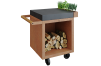 OFYR Mise en Place Corten 65 PRO został wyposażony w praktyczne kółka i uchwyt. Wspomniane akcesoria zwiększają mobilność mebla. Stół można przemieszczać w dowolne miejsce w ogrodzie. Do mebla dołączono też poręczną deskę do krojenia z płyty ceramicznej w kolorze ciemnoszarym. Akcesorium nie trzeba chować do domu po skończonym gotowaniu. Nie powinny zaszkodzić mu zmienne warunki atmosferyczne.