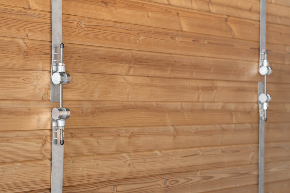- Metalowa opaska wykonana z wysokiej jakości stali 304 oraz stali nierdzewnej o grubości 1 mm i szerokości 4 cm, stanowi solidne zabezpieczenie i nadaje saunie estetyczny wygląd.