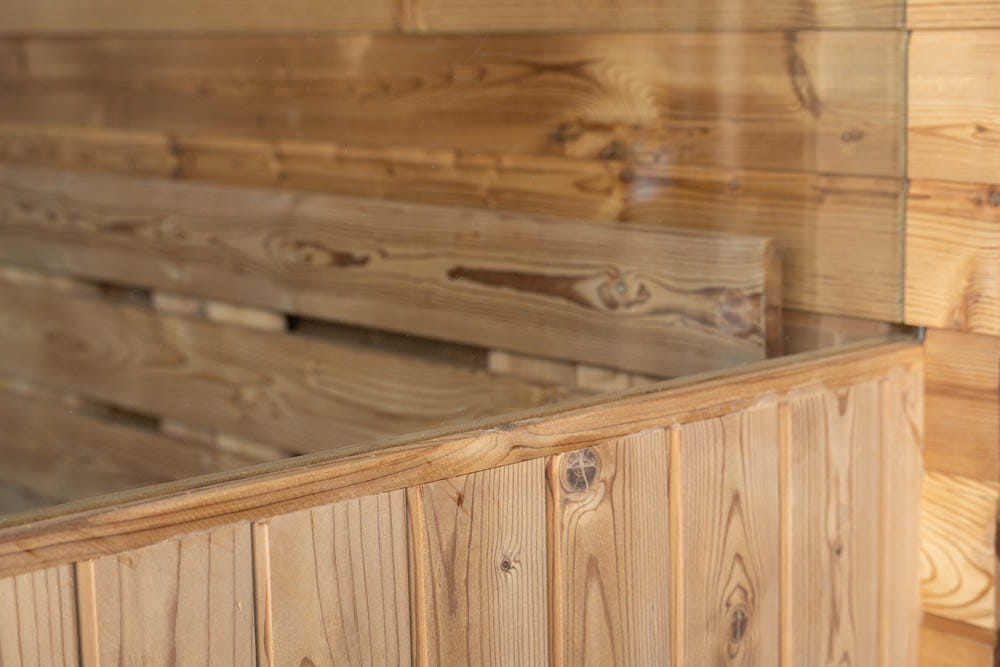 - materiał wykonania sauny: drewno sosnowe Pinia Thermo, szkło hartowane 10 mm
