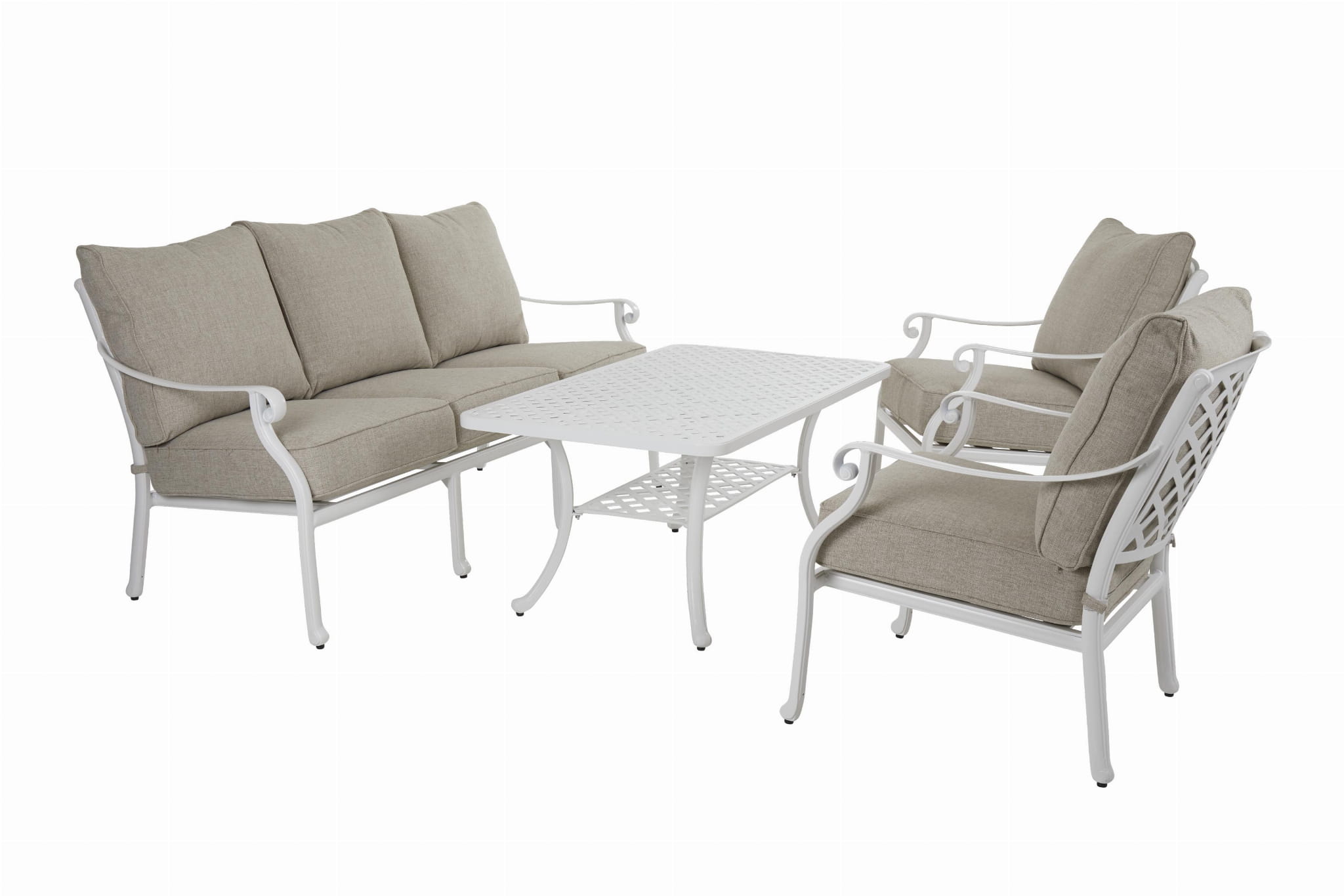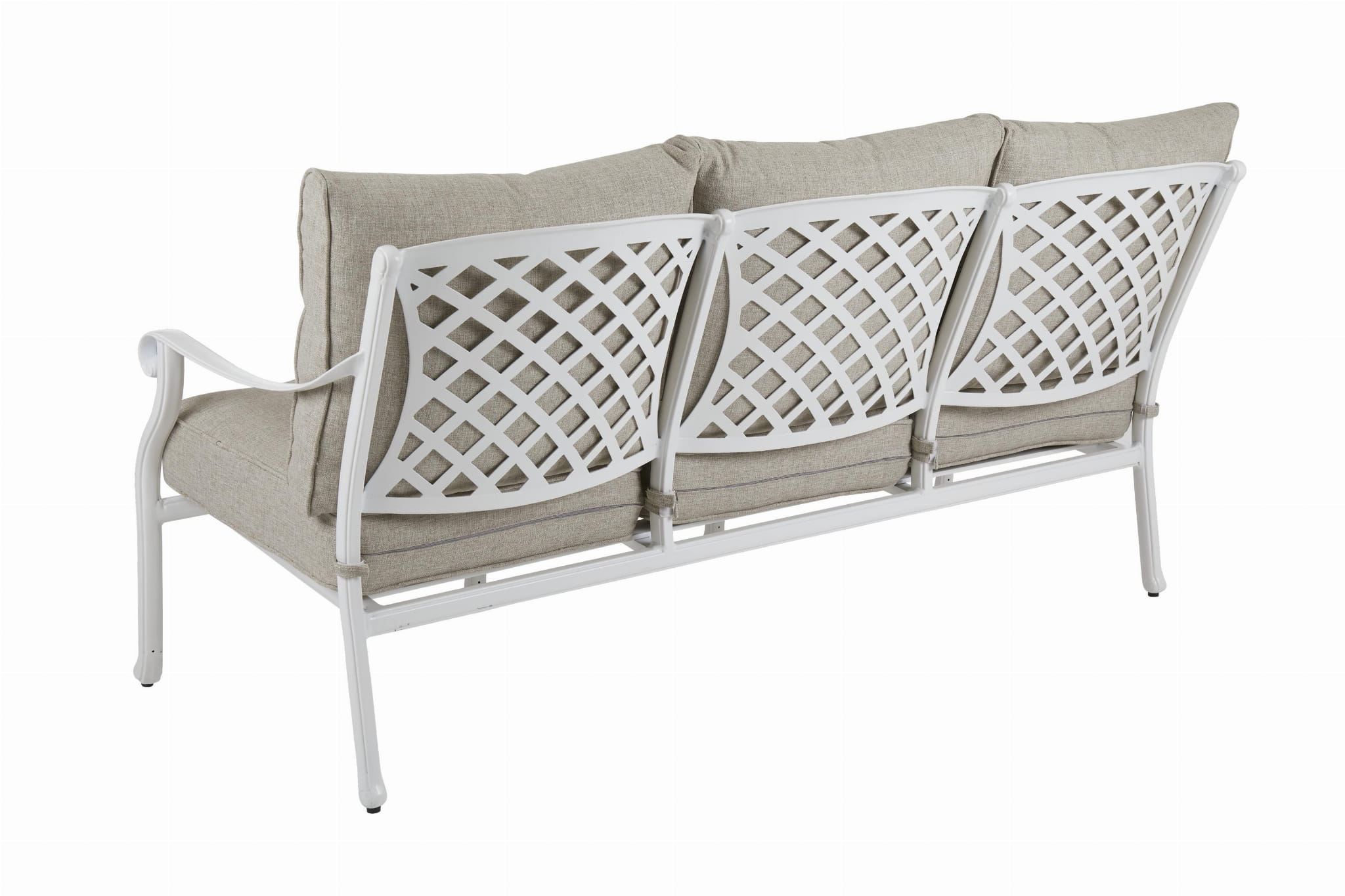 Sofa 3-osobowa Vichy została wykonana z aluminium malowanego proszkowo, dzięki czemu wykazuje odporność na warunki atmosferyczne. Mebel może cieszyć oko i służyć swoim użytkownikom przez wszystkie pory roku. Jest stylowy, stabilny i wygodny, zachęcając do relaksu na świeżym powietrzu i w dobrym towarzystwie.