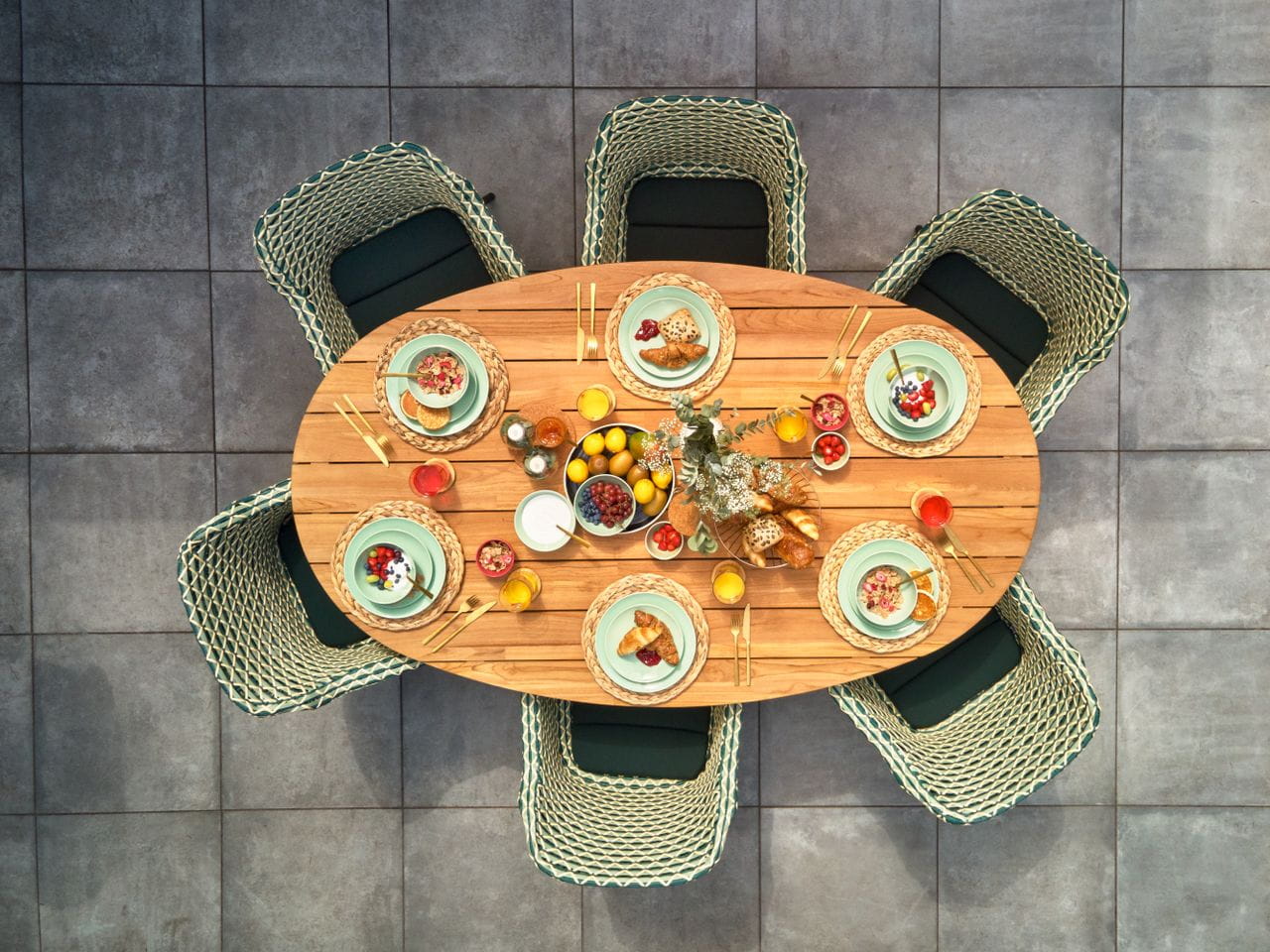 Nogi stołu, skrzyżowane na środku, nie tylko stanowią stabilne podparcie, ale również dodają unikalnego charakteru całej konstrukcji. Wykonane z aluminium, są odporne na warunki atmosferyczne, co gwarantuje trwałość mebla przez wiele sezonów.