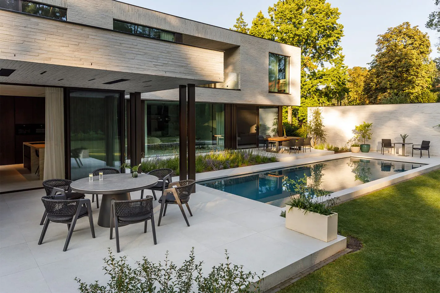 Połączenie grafitowej konstrukcji z ceramicznym blatem tworzy ponadczasowy design, który doskonale wpisuje się w różnorodne aranżacje zewnętrzne – od minimalistycznych po bardziej klasyczne.