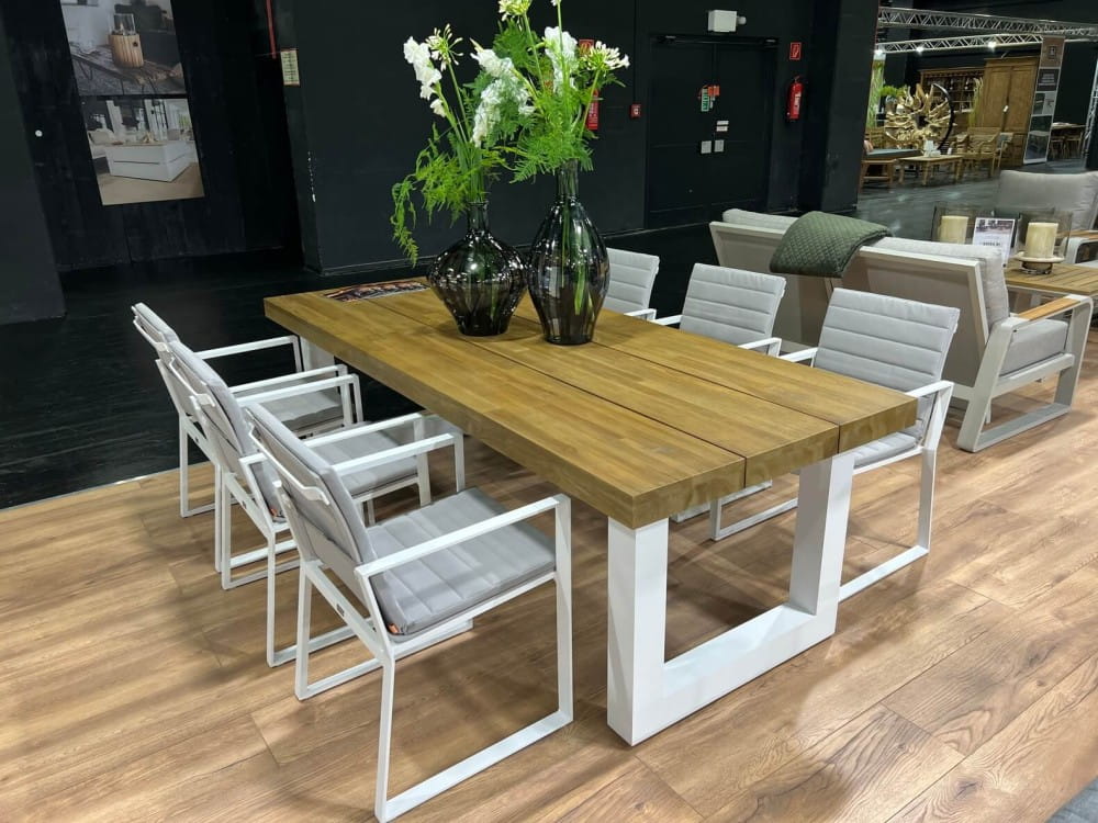 Stół Nevada White Teak o wymiarach 240x100 cm jest idealny do organizacji rodzinnych posiłków na świeżym powietrzu, oferując przestronność i komfort. Połączenie białej aluminiowej ramy z drewnianym blatem wprowadza elegancję i harmonię do każdego ogrodu, tarasu czy przestrzeni wypoczynkowej. Dzięki swojej odporności na czynniki atmosferyczne, stół jest doskonałym rozwiązaniem do użytku na zewnątrz przez cały rok, zapewniając niezawodność i styl w każdej chwili.