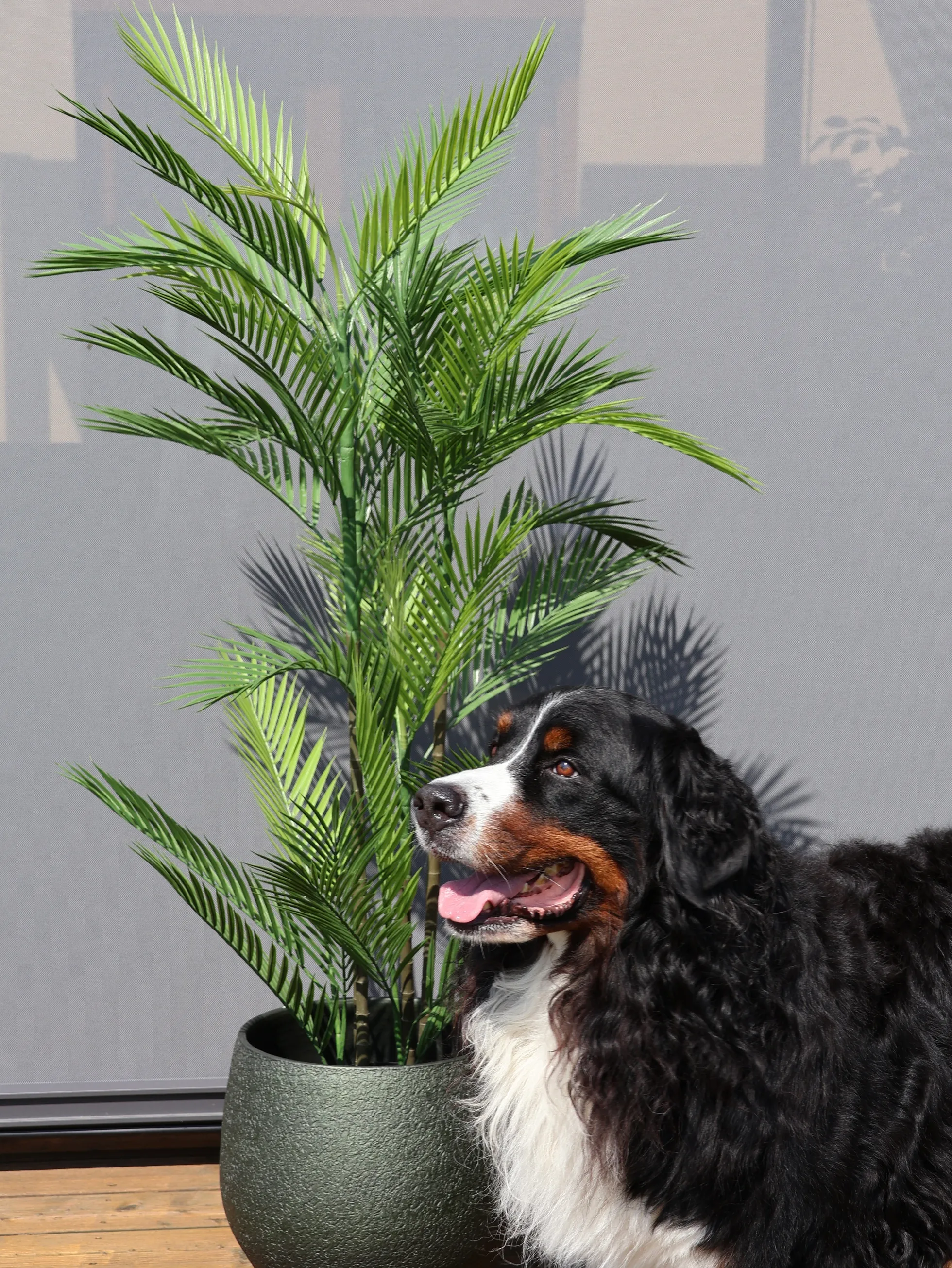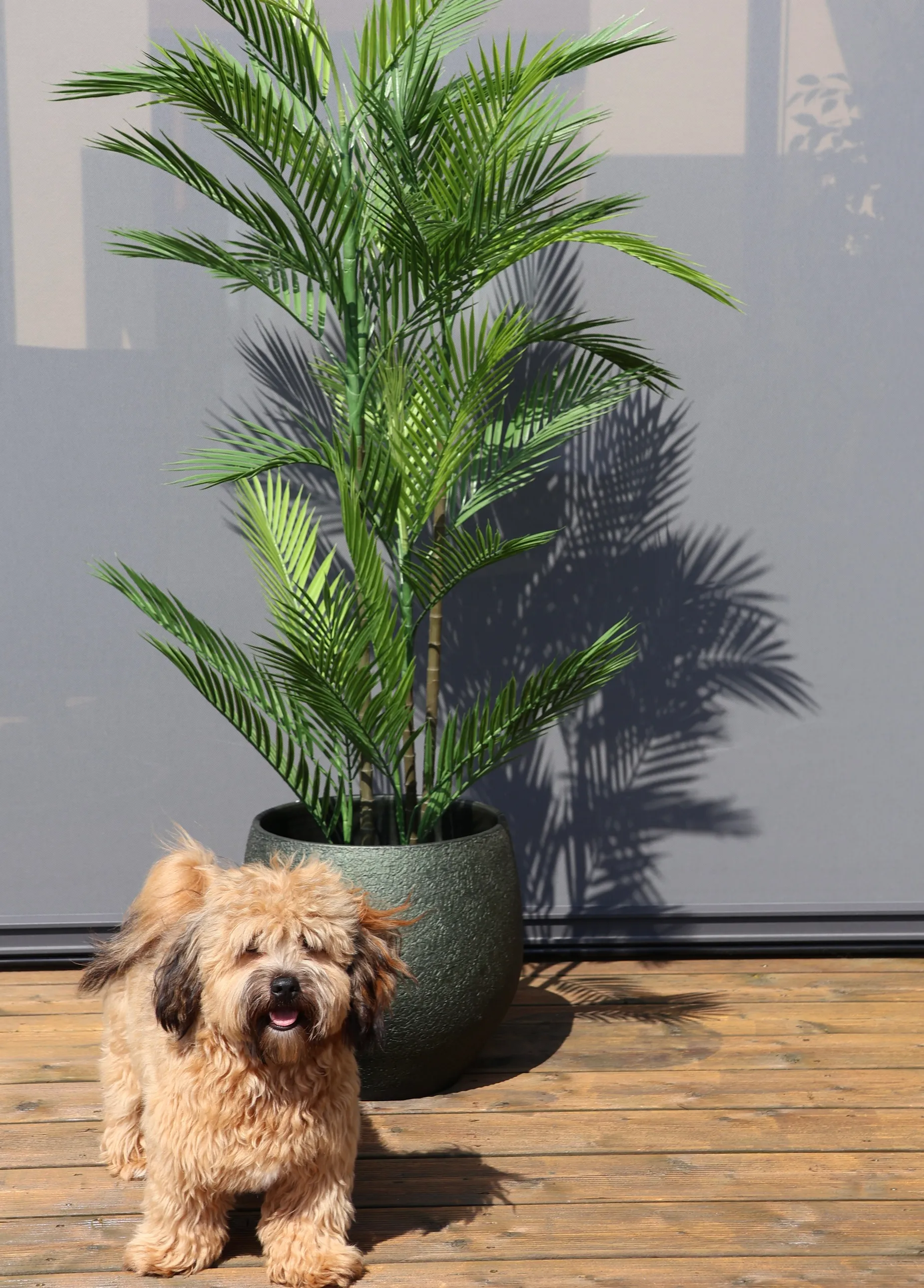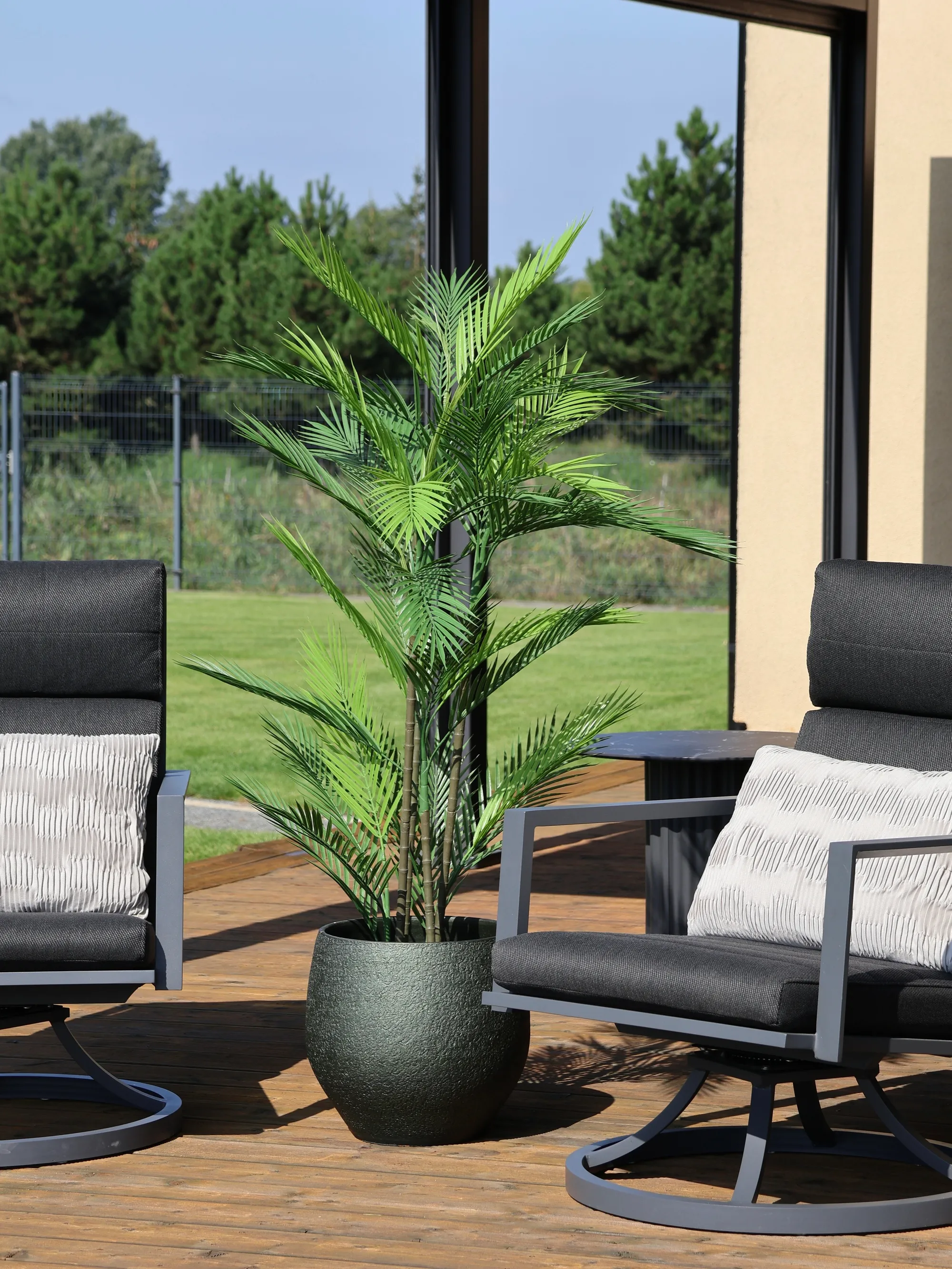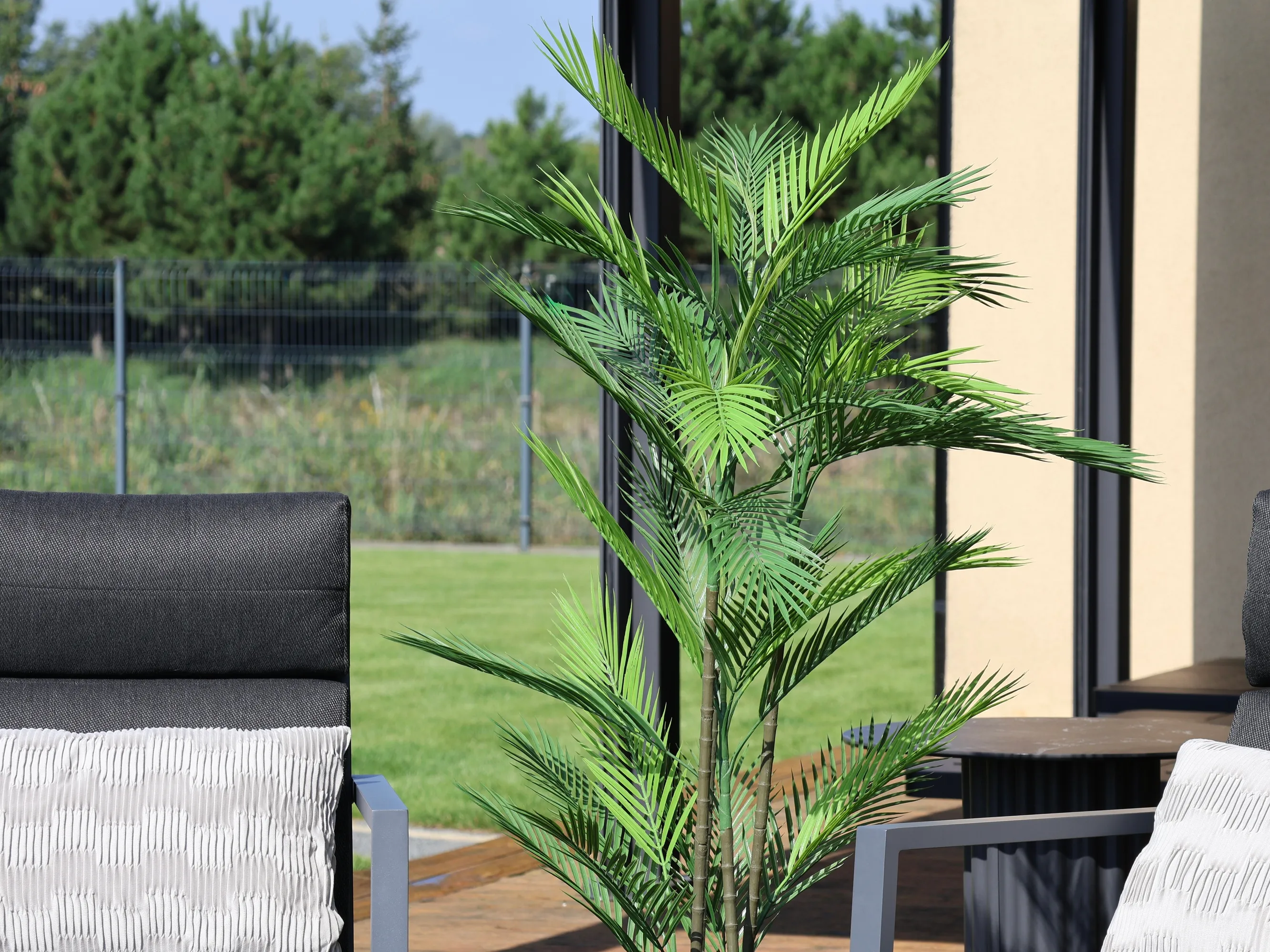 Dzięki odporności na promieniowanie UV oraz zmienne warunki atmosferyczne palma świetnie sprawdzi się nie tylko we wnętrzach, ale również na zewnątrz – na tarasie, balkonie czy w ogrodzie. Nie wymaga podlewania ani pielęgnacji, a mimo to przez cały rok zachowuje piękny, naturalny wygląd.