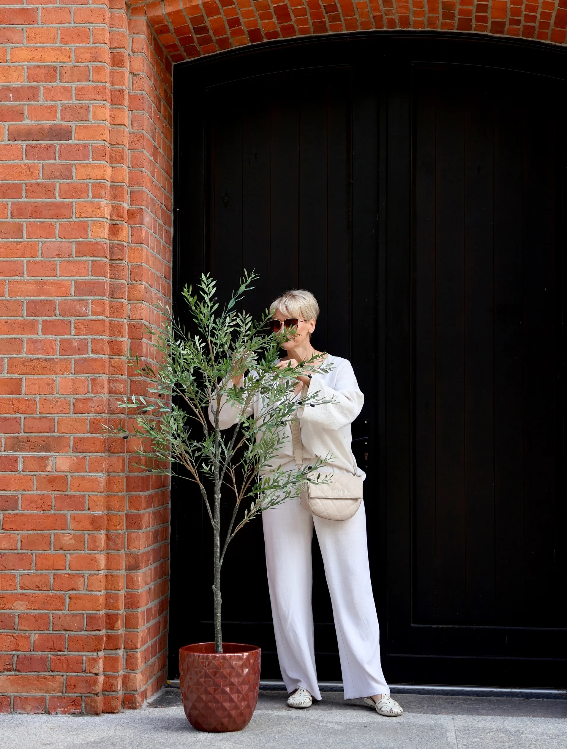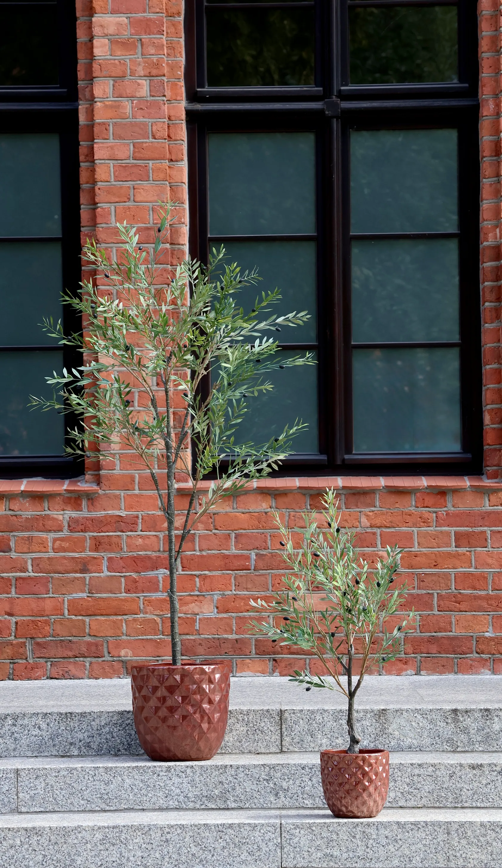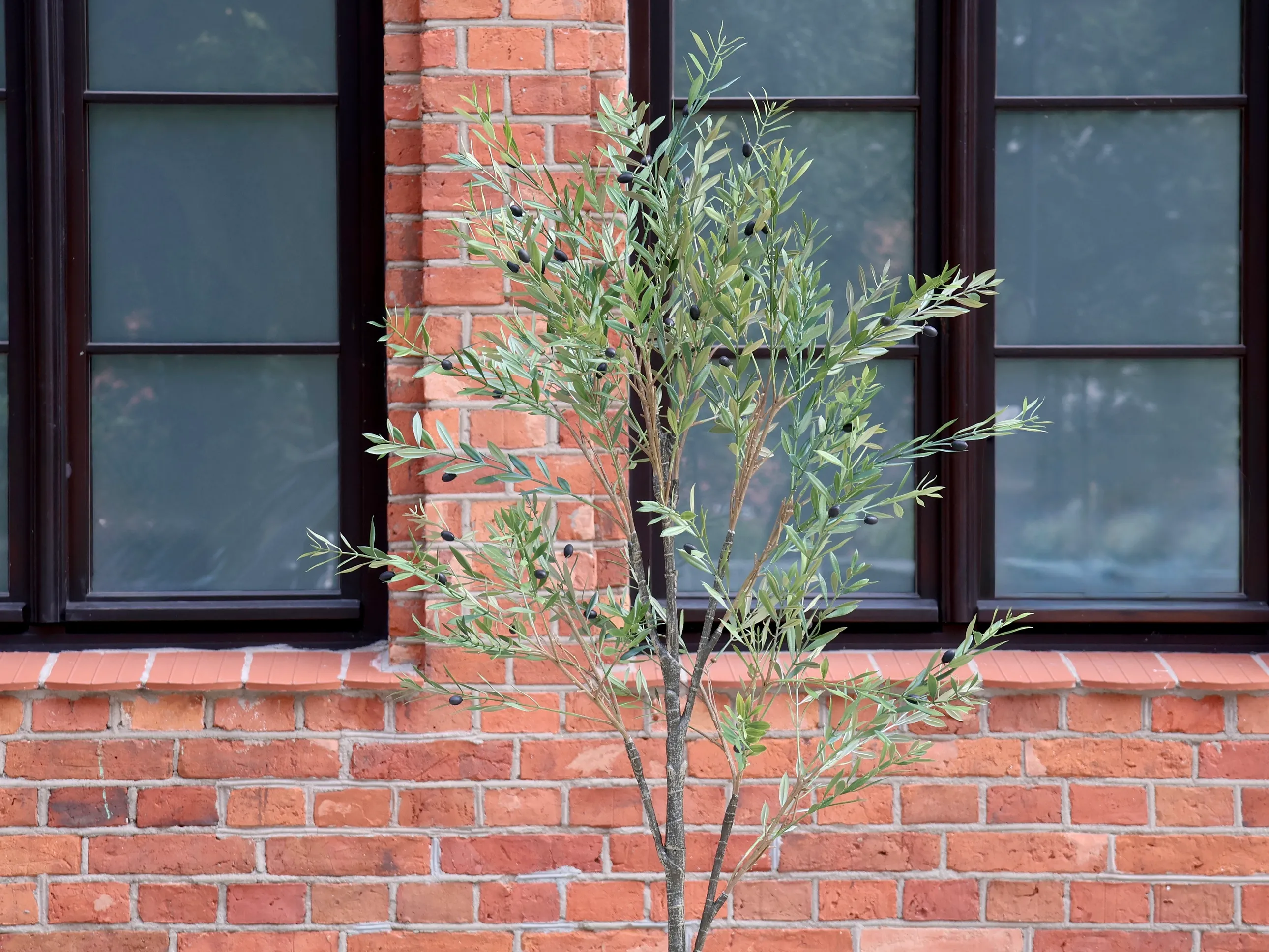 Charakterystyczne, wąskie liście w delikatnie przygaszonej zieleni i realistycznie odwzorowany pień nadają drzewku autentyczny wygląd. Drobne oliwki dodają całości subtelnego uroku i naturalności. Odporność na promieniowanie UV oraz zmienne warunki atmosferyczne sprawia, że roślina może być bez obaw eksponowana na zewnątrz – nie blaknie i nie traci formy.