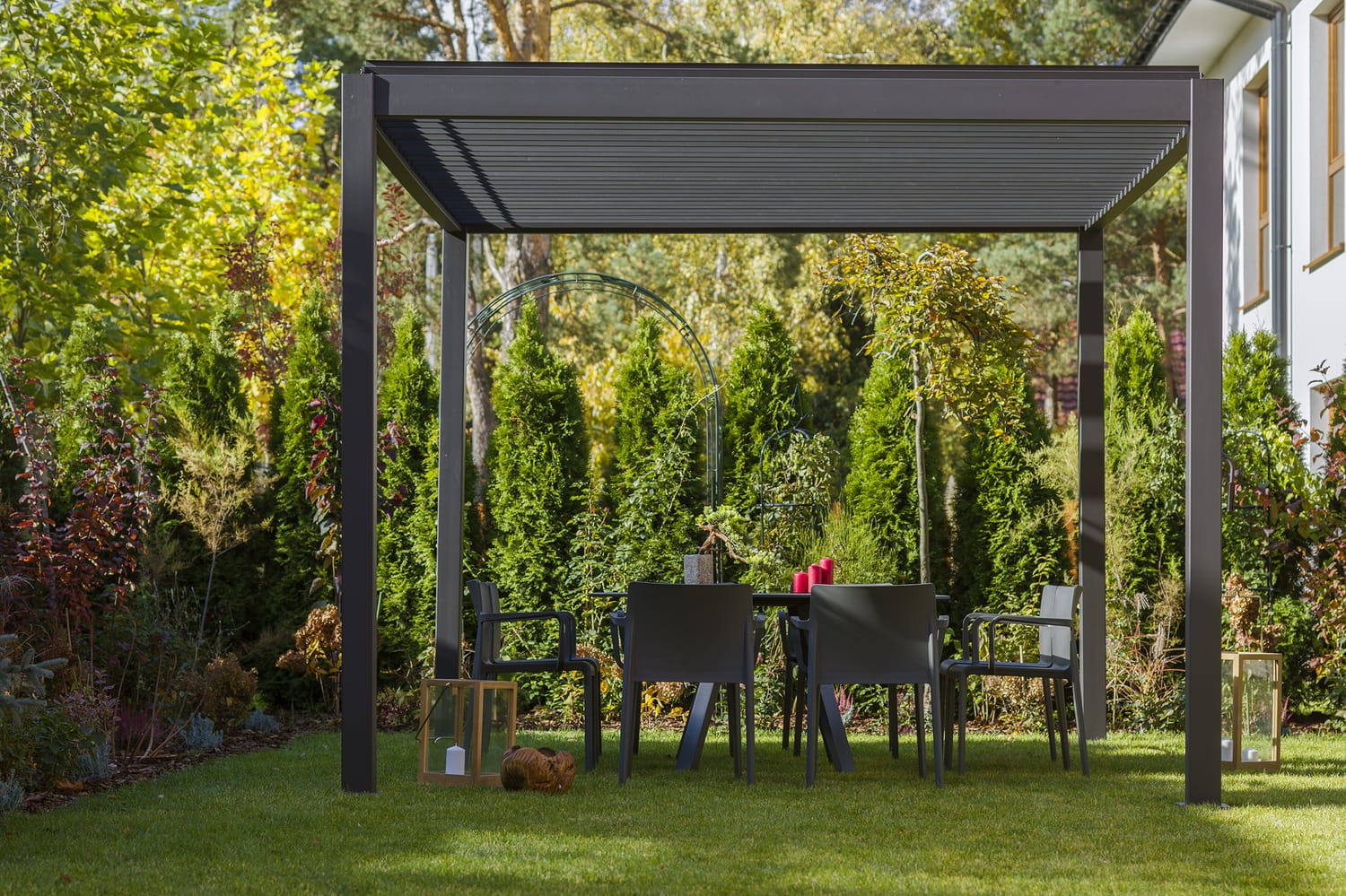Zadaszenie lamelowe Tulon osłoni Cię przed deszczem albo stworzy przyjemny cień. Dzięki ruchomym elementom tworzącym dach możesz samodzielnie zadecydować, w jakim stopniu zamkniesz i zacienisz swoje miejsce wypoczynku. Zadaszenie lamelowe Tulon pozwala dostosować warunki panujące w ogrodowej strefie relaksu do aktualnych potrzeb i kaprysów pogody.