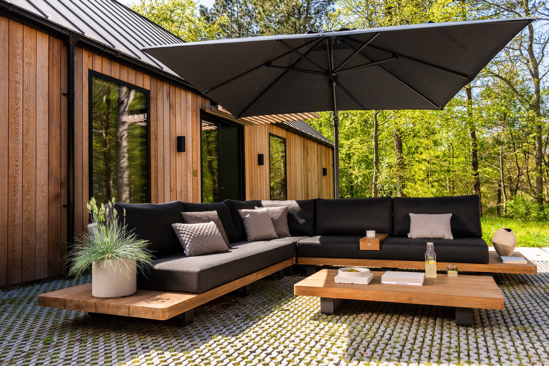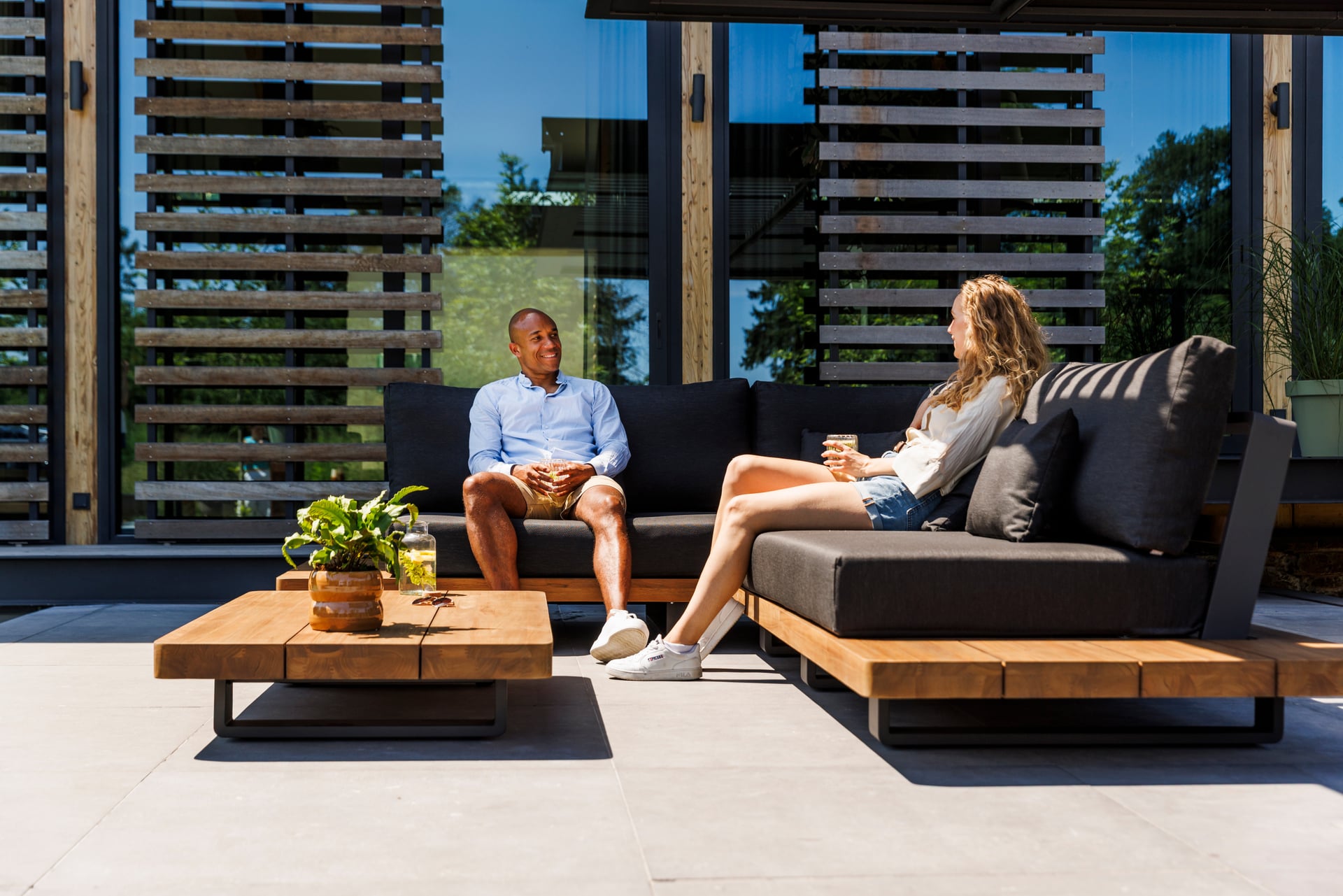 Zestaw dostępny jest w dwóch dużych konfiguracjach narożnika, doskonale dopasowanych do przestronnych tarasów i ogrodów: