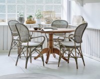 Meble do wnętrz z kolekcji Rossini Michel posiadają piękne, półprzeźroczyste plecionki na oparciach krzeseł, które sprawiają, że zestaw jest lekki i subtelny. Meble rattanowe są ponadto łatwe do utrzymania w czystości, dzięki czemu ze stołu i krzeseł szybko usuwa się resztki posiłków i napojów.