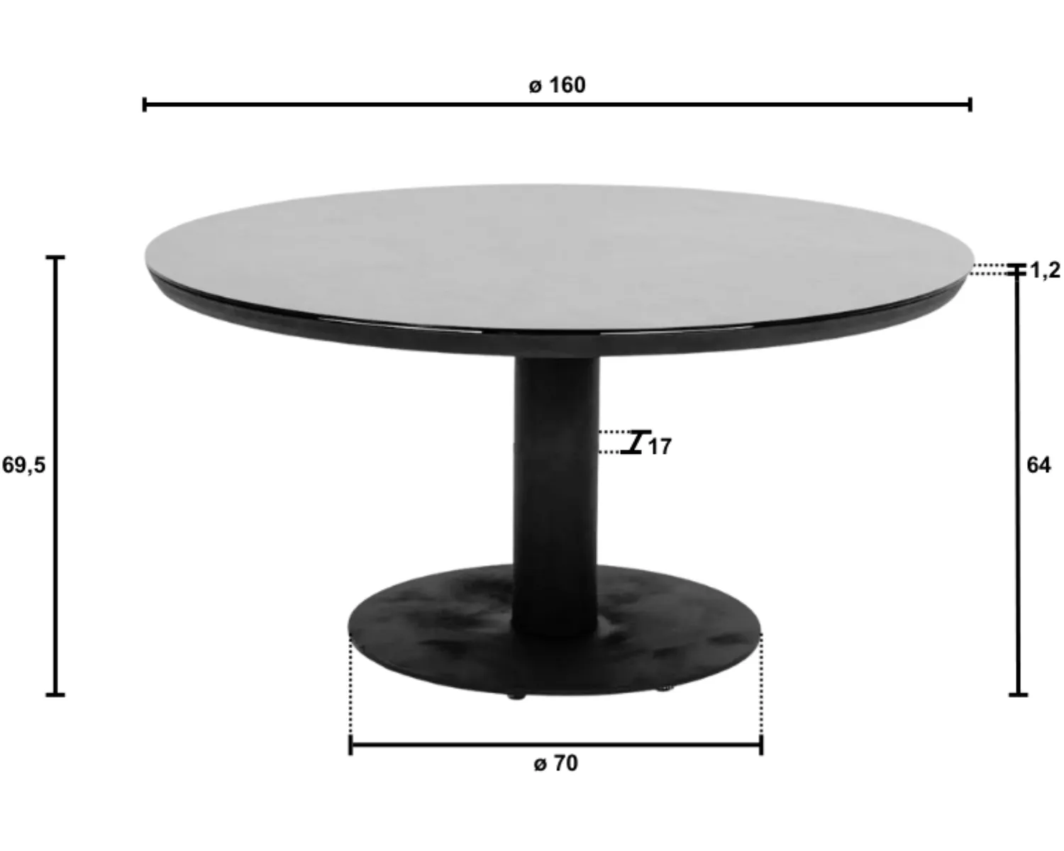 Stół w wersji obniżonej zachowuje elegancki design i funkcjonalność – posiada blat z kamienia w jasnym odcieniu, odporny na wilgoć, zarysowania i promieniowanie UV. Centralnie umieszczona okrągła nadstawka ułatwia serwowanie potraw i sprzyja wspólnemu spędzaniu czasu przy stole.