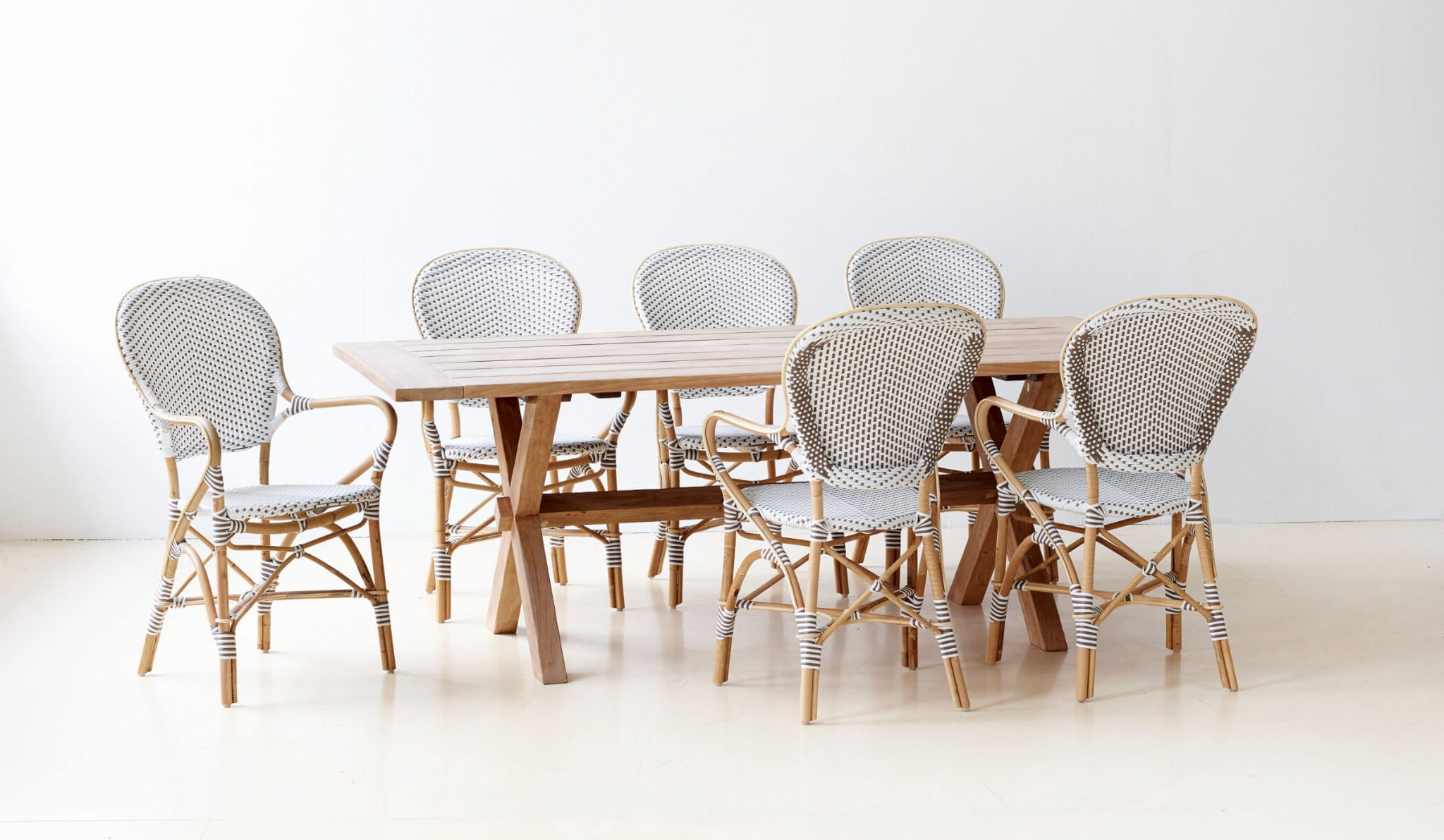 Wszystkie z mebli tworzących zestaw obiadowy 6 os. Isabell Colonial są odporne na czynniki atmosferyczne i mogą stać na zewnątrz cały rok. Biel wspaniale łączy się w nich z miodowym kolorem teaku. To wyjątkowa, stylowa propozycja do ogrodu lub na taras w stylu balijskim czy boho.