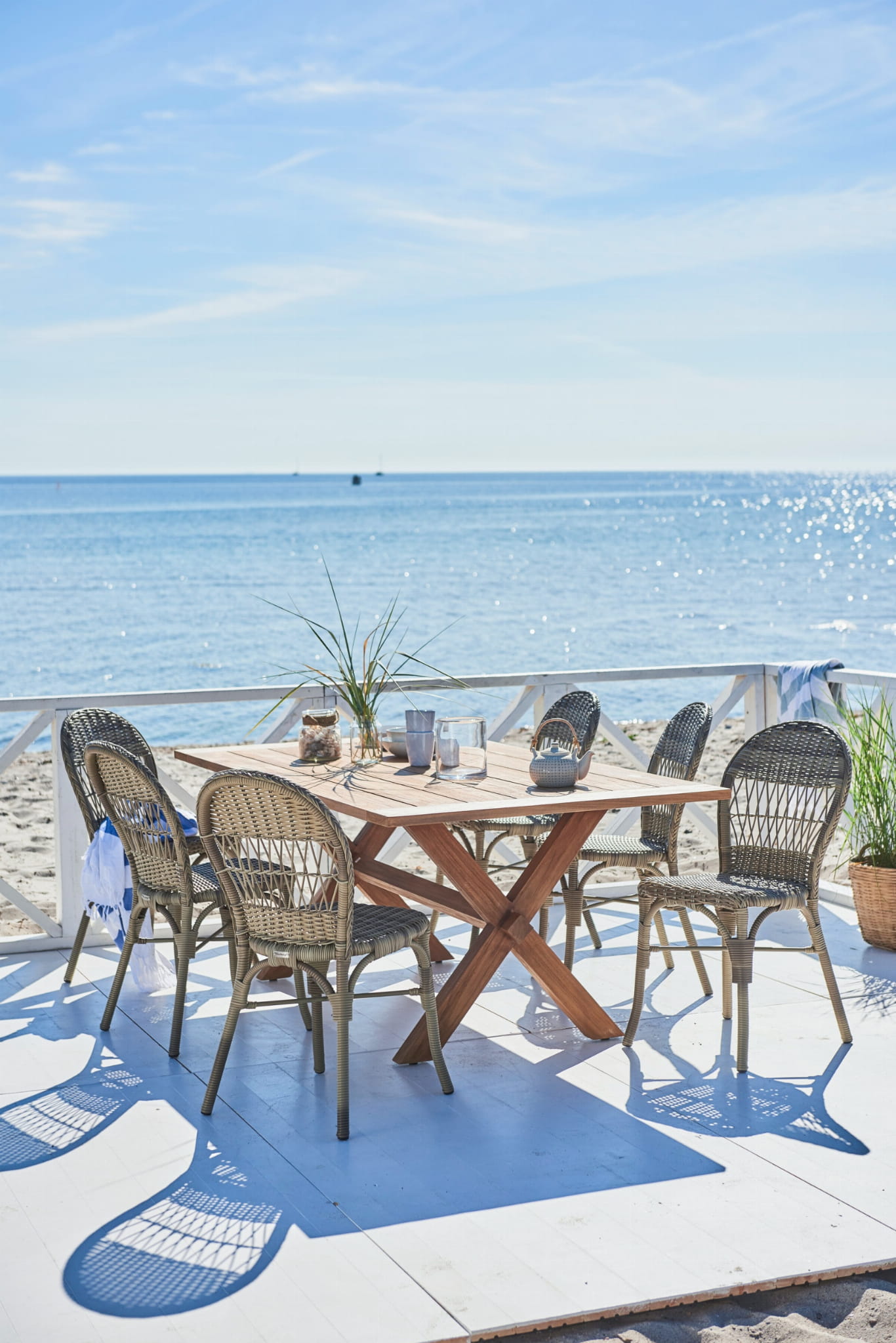 Zestaw obiadowy 6 os. Ofelia Colonial to intrygujące połączenie klasyki i rustykalnego czy plażowego stylu z nowoczesnością. Składa się z masywnego stołu o prostokątnym blacie oraz 6 ażurowych krzeseł. Wszystkie meble są odporne na czynniki atmosferyczne. Nie musisz bać się o ich wygląd, gdy pozostawisz je na zewnątrz przez cały rok.