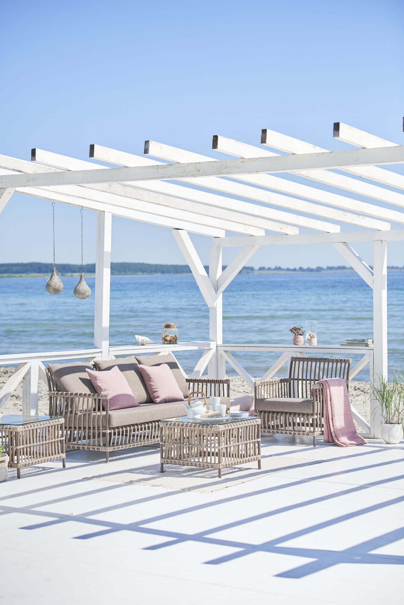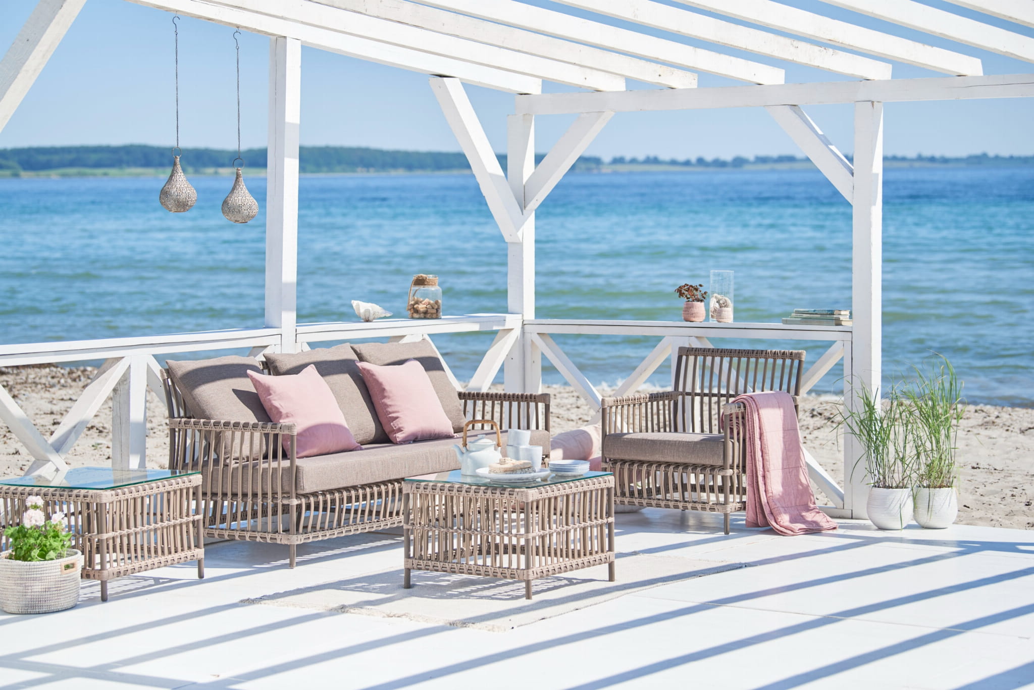 Proponowane sprzęty są nie tylko piękne i wygodne, ale też odporne na warunki atmosferyczne. Komplet możesz bez obaw zostawić na zewnątrz również po sezonie.