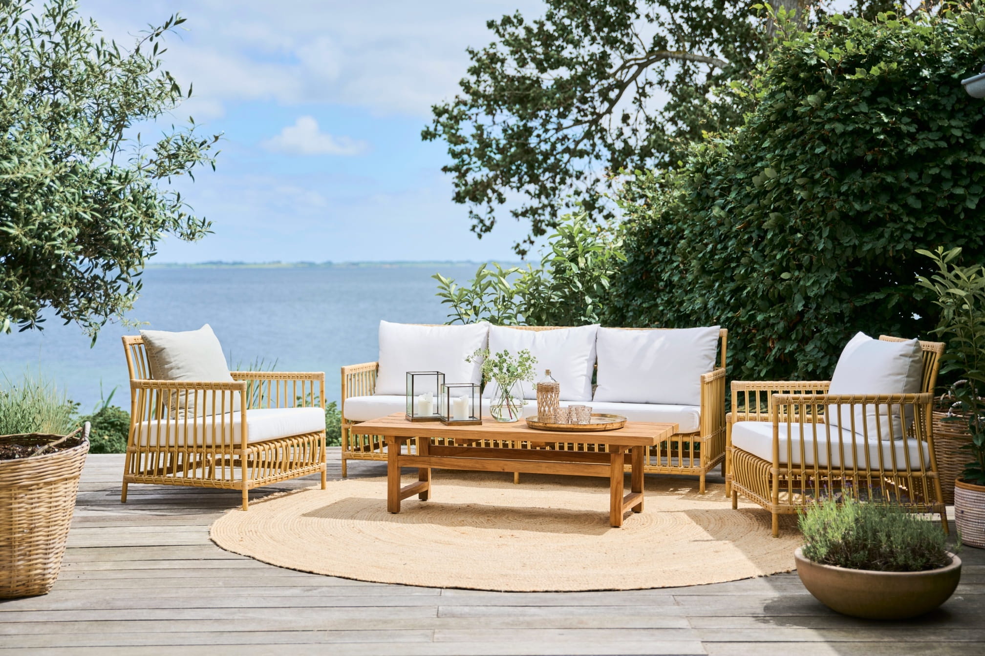 Zestaw wypoczynkowy Caroline ze stolikiem teak Julian składa się z 3-osobowej sofy, 2 foteli i stolika kawowego. Meble mają proste, klasyczne linie zestawione z ażurowymi elementami dodającymi sprzętom subtelności i lekkości. Uniwersalna kolorystyka ułatwia wpasowanie zestawu w różne aranżacje. Meble pięknie harmonizują z zielenią ogrodu i pomagają stworzyć osobistą oazę spokoju.