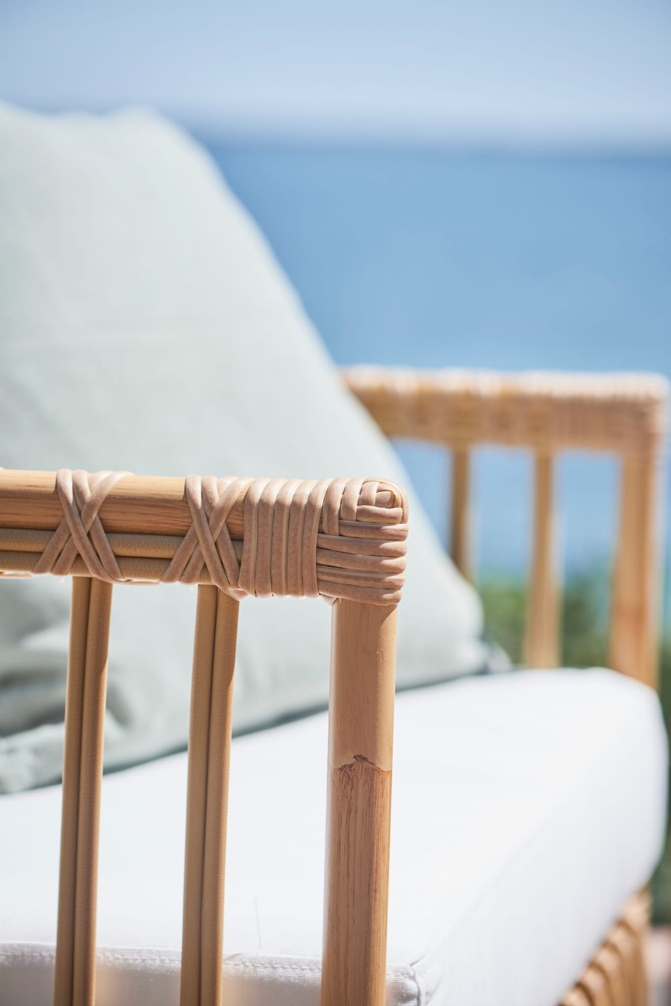 Sofa i fotele Caroline stanowiące część proponowanego zestawu zostały wykonane z aluminium i plecionki technorattan. Aluminiowe elementy zostały pomalowane proszkowo dla gładkiego wykończenia i żywego koloru. Meble mogą stać na podwórku przez cały rok. Są solidne, wytrzymałe, lekkie i bezproblemowe w czyszczeniu. Meble wypoczynkowe uzupełniają poduszki z Quick Dry Foam, czyli szybkoschnącej pianki. Dzięki temu dodatkowi zestaw jest jeszcze bardziej wygodny w użytkowaniu.