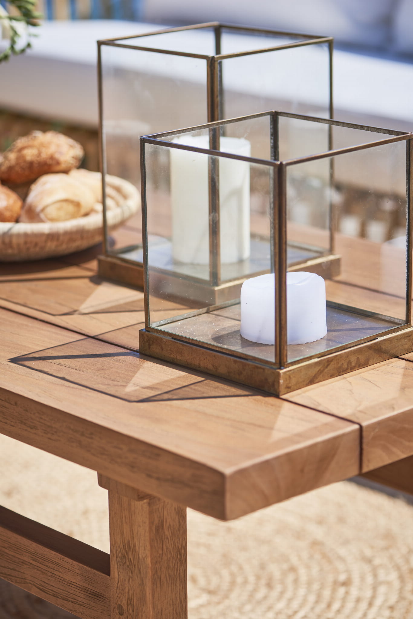 W oferowanym komplecie znalazł się także teakowy stolik Julian o prostokątnym blacie, który pomieści półmiski z przekąskami i dekoracje dodające charakteru Twojemu kącikowi relaksu. Do produkcji stołu zostało wykorzystane drewno tekowe klasy premium – wolne od skaz takich jak sęki czy pęknięcia, o prostej strukturze słojów i jednolitym kolorze. Wysokiej jakości teak pochodzi ze zrównoważonych indonezyjskich plantacji.