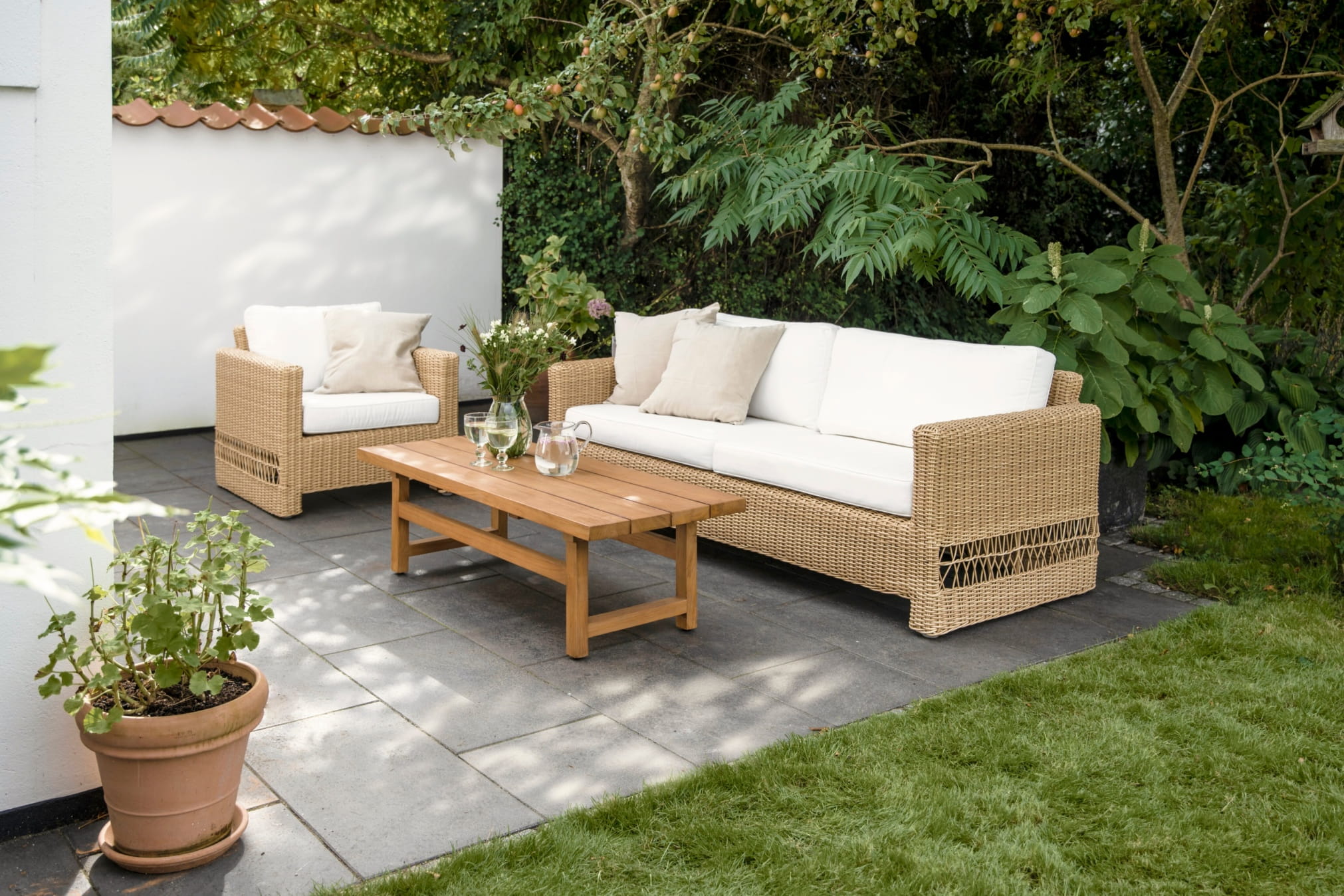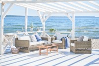 Zestaw wypoczynkowy Carrie Julian ma rustykalny styl kojarzący się z przytulnością i swobodną atmosferą. Komplet wyróżnia się także nieprzeciętną praktycznością i wytrzymałością. Wszystkie znajdujące się w nim meble są odporne na warunki pogodowe. Możesz bez obaw zostawić je na zewnątrz również po sezonie.