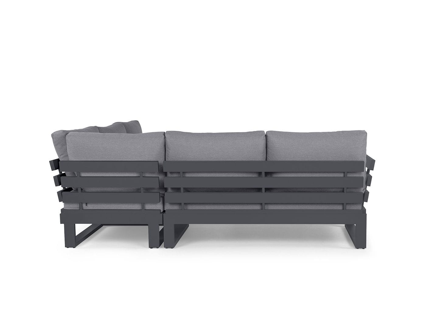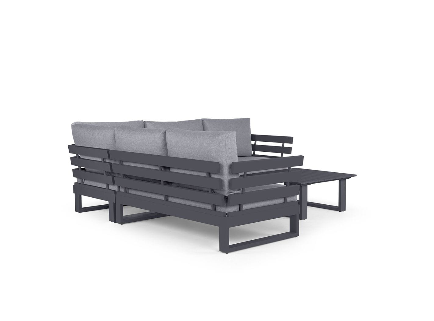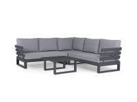 Zestaw wypoczynkowy Ibiza to elegancki i nowoczesny komplet mebli ogrodowych, idealny do relaksu na świeżym powietrzu. Został wykonany z trwałego aluminium, co gwarantuje stabilność i odporność na warunki atmosferyczne, takie jak deszcz czy słońce. Aluminium to również materiał łatwy w utrzymaniu, co ułatwia pielęgnację mebli.