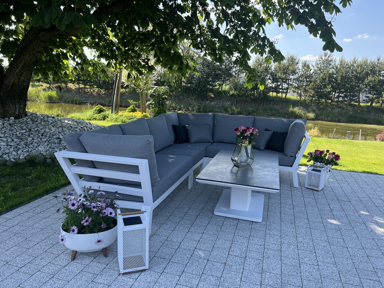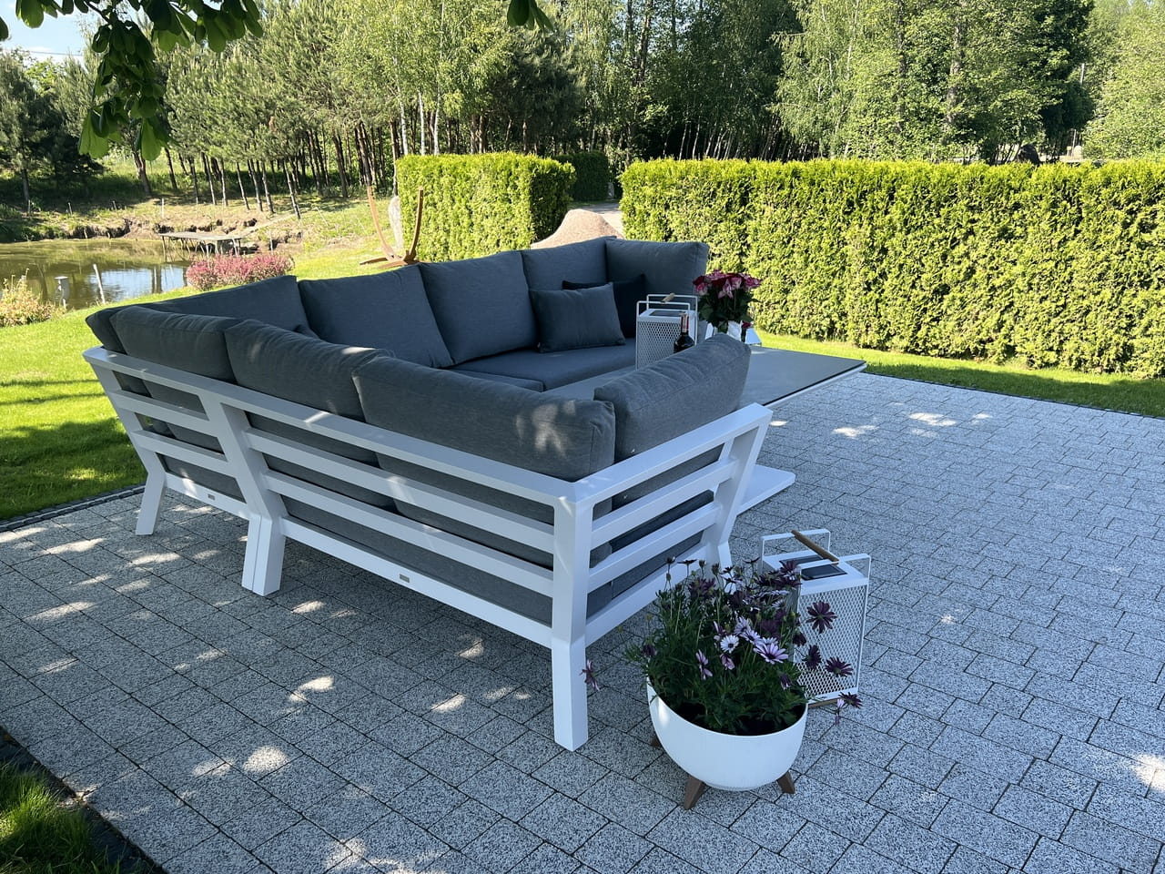 - aluminium white (białe) / poduszki mist grey soltex (jasnoszare)
