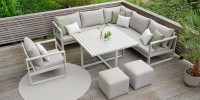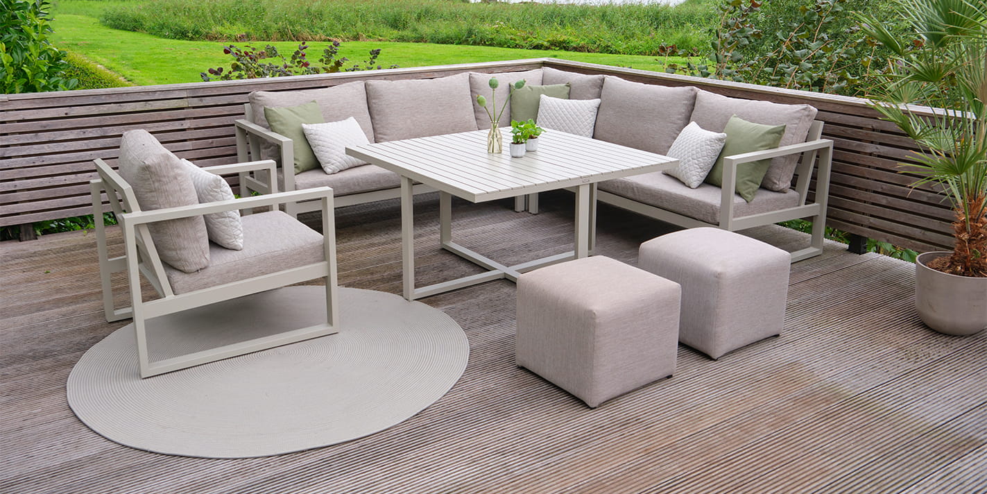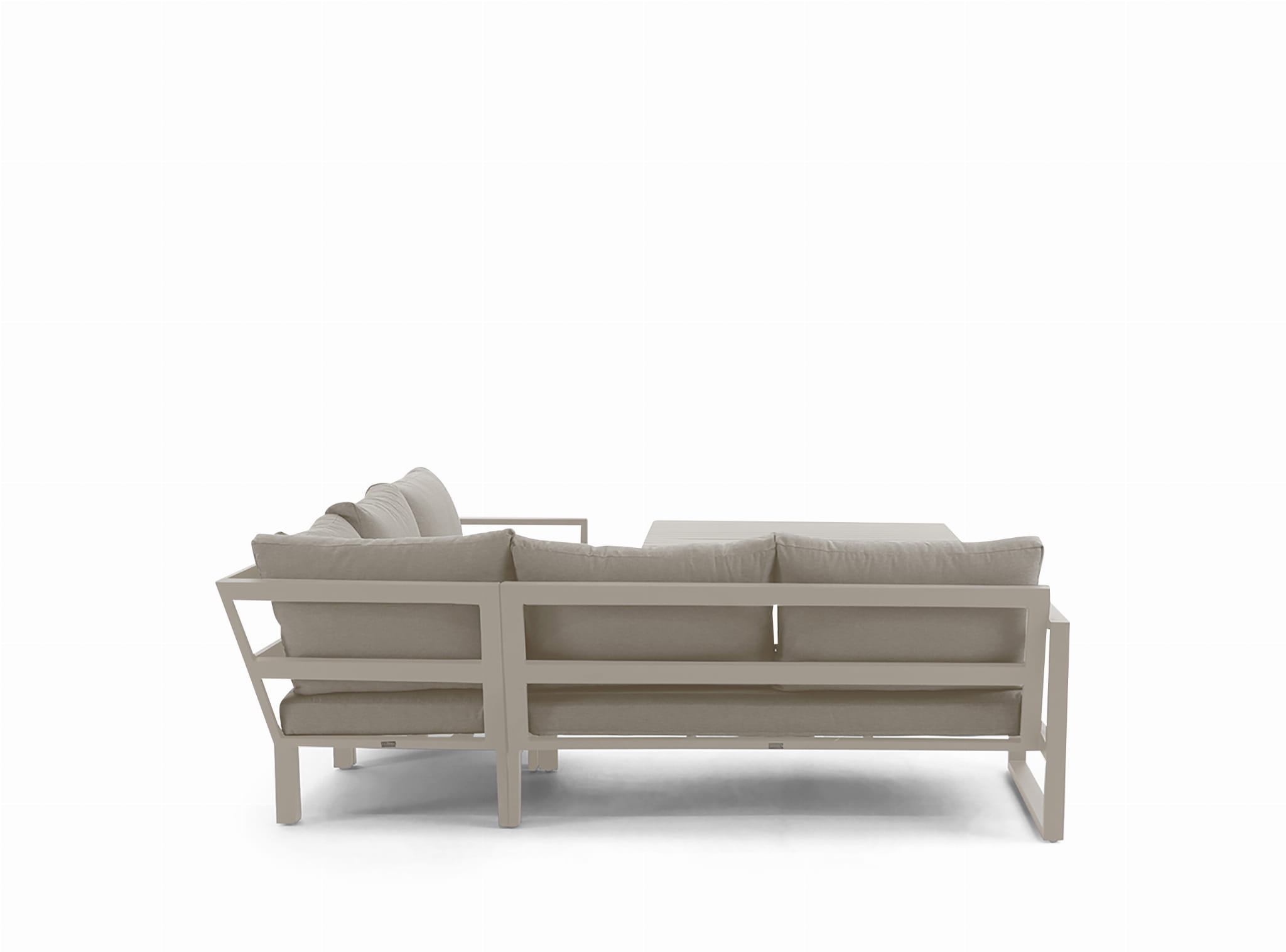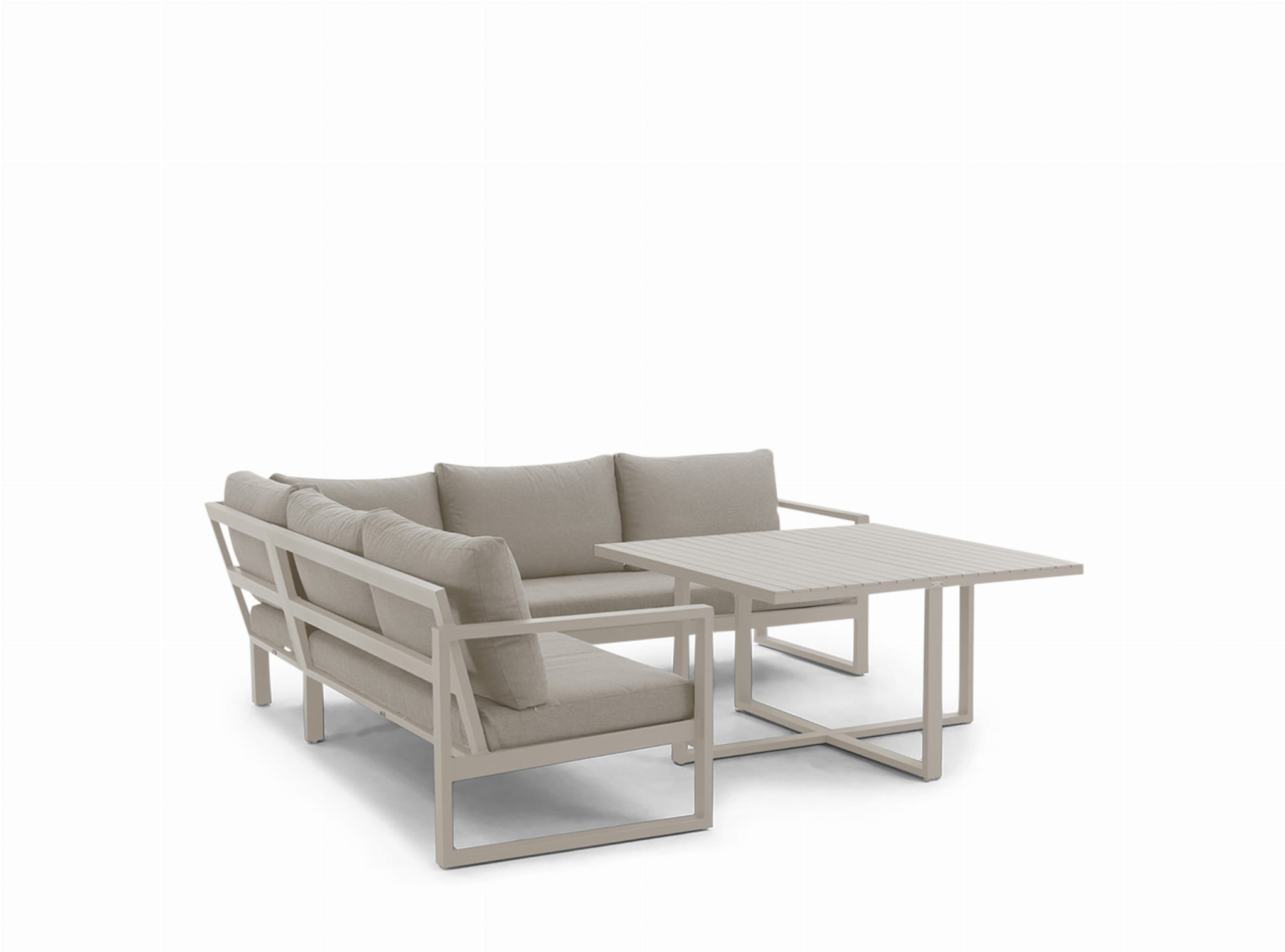 Zestaw wypoczynkowy narożnik Orleans to doskonały wybór dla osób szukających eleganckiego i funkcjonalnego rozwiązania do ogrodu czy na taras. Charakteryzuje się prostym, ponadczasowym designem, który wpasowuje się w niemal każdy styl przestrzeni zewnętrznej. Wykonany z lekkiej, ale trwałej ramy aluminiowej, zestaw Orleans łączy nowoczesność z subtelną elegancją, wprowadzając do Twojego ogrodu atmosferę spokoju i luksusu.